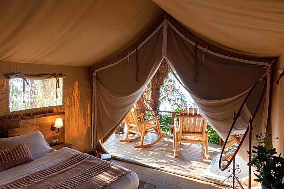 This suite is located in a bamboo house with wooden and fabric interiors, and straw roof. It offers stunning views of the sea. It also has a private balcony with a hot tub, a vegetable garden and direct access to the sea.